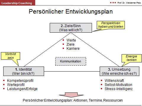 Ob in Seminaren, Coaching oder Training - ein wichtiges Ziel ist die Erarbeitung eines persönlichen Entwicklungsplans. Die nachfolgende Grafik zeit einen typischen Ablauf, wie dies funktioniert.